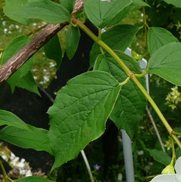 本州に自生するニッコウバイカウツギ(ケバイカウツギ)は葉裏に毛が密生し、 本州、 四国、 九州に分布するシコクウツギは花柱に毛があります。 京都府から岡山県にかけて点在するアイノコバイカウツギは葉裏と花柱に毛があり、 双方の交雑種と見られています。