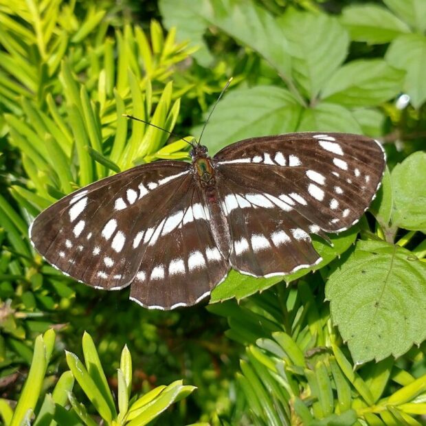 ホシミスジ(チョウ)の幼虫が、 葉を食べます。