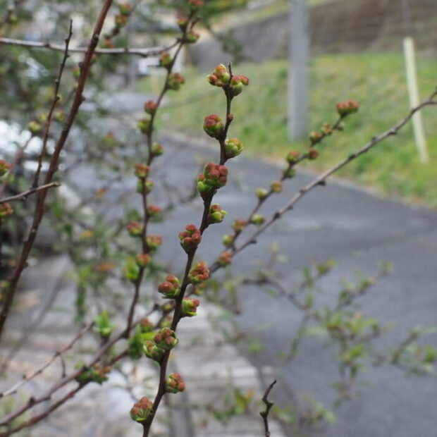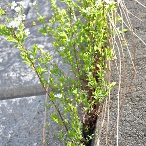 ユキヤナギは日当たりのよい河原などの岩場が故郷です。 どんな土でも文句を言わずに、 それぞれの場所で生きて増えます。 どこでも熟睡できて、 狭い場所で「落ち着くわー」と言うタイプかも?