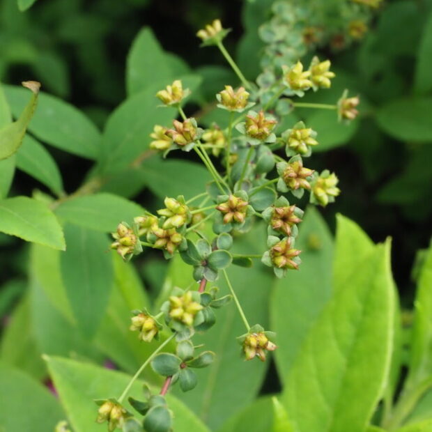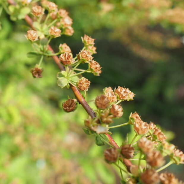 種を包んだ5つの袋が集まって付き、 5~6月に茶色くなり種をはじき飛ばします。