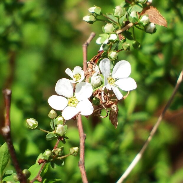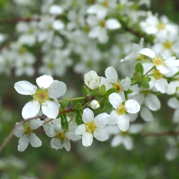 春、 小さくて雪のような白い花を枝いっぱいに咲かせます。