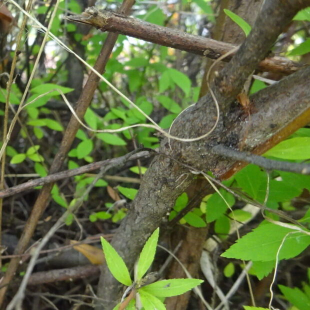 細い枝がたくさん生えて、 枝先が垂れ下がります。 よく伸びるので、 しばしば角刈りにされることもあります。