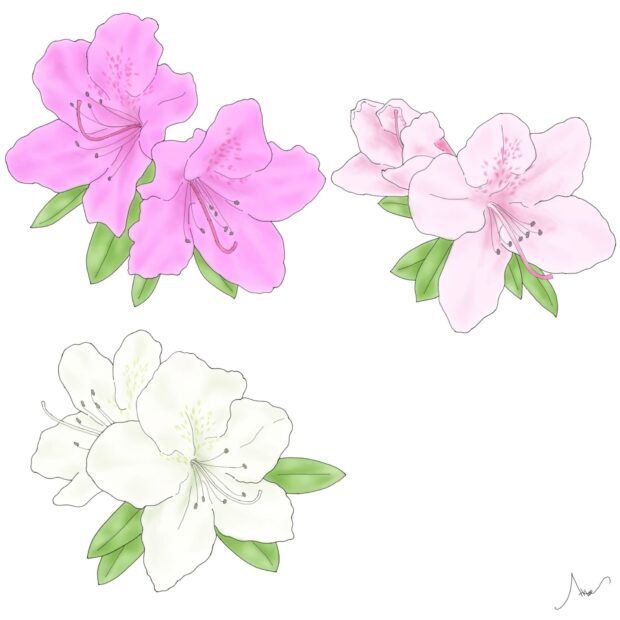 長崎県の平戸で複数のツツジの雑種がもとになって作り出された園芸品種です。 たくさんの種類があります。 大きな葉っぱで低木だけどボリュームのある樹形を作り、 大輪の美しい花を咲かせるので、 公園や庭園、 街路樹として人気です。