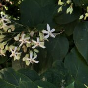 真夏にユリのような良い香りがする白い花を咲かせます。 他の花が少ない時期なので目立ちます。