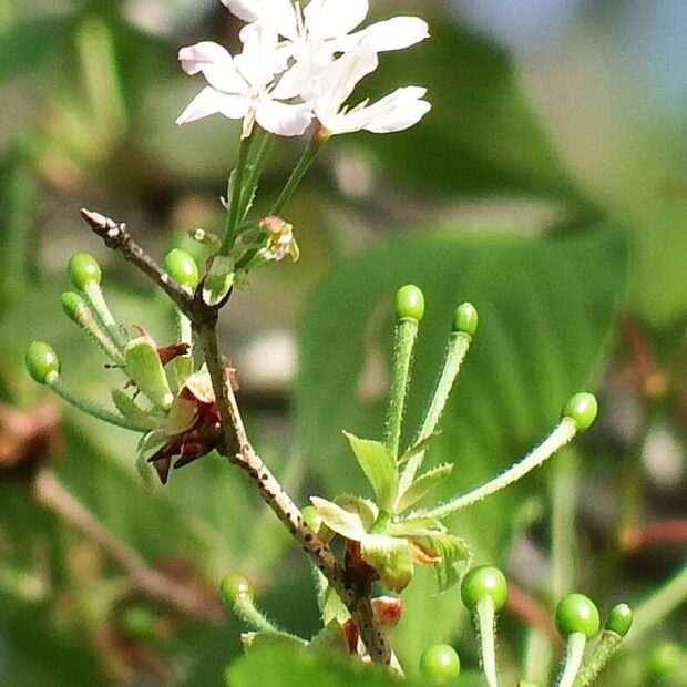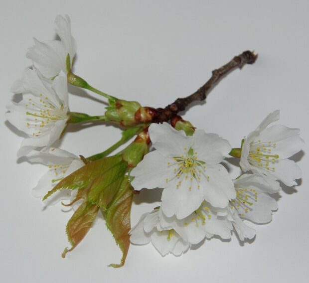 かすみに例えられる花は、 ほぼ白。 緑色の新葉と一緒に咲く様子がカスミに例えられました。