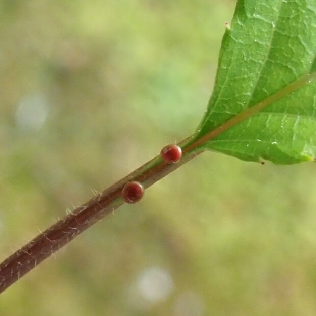 先がとがった細い、 だ円形の形をしています。 長さ3~5mmで毛は無くツルっとしています。