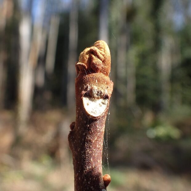 枝を折ってなめると、 と~ってもにがい木で、 名前の由来にもなっていますが、 それよりも見逃せないのは冬芽です。