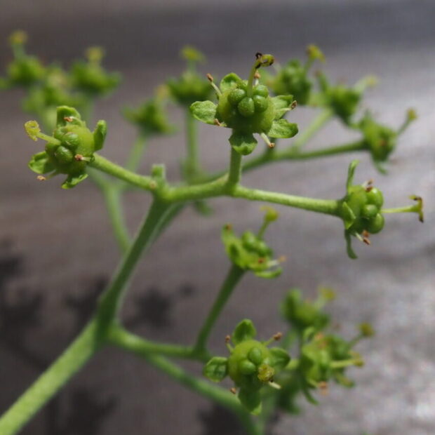4~5月、 葉の付け根に黄緑色の小さな可愛い花をたくさん付けます。 め木に付くめばなは1か所あたり7~10個。 お木につくおばなは、 1か所あたり30~50個で、 おばなの方が多く、 きれいに見えます。