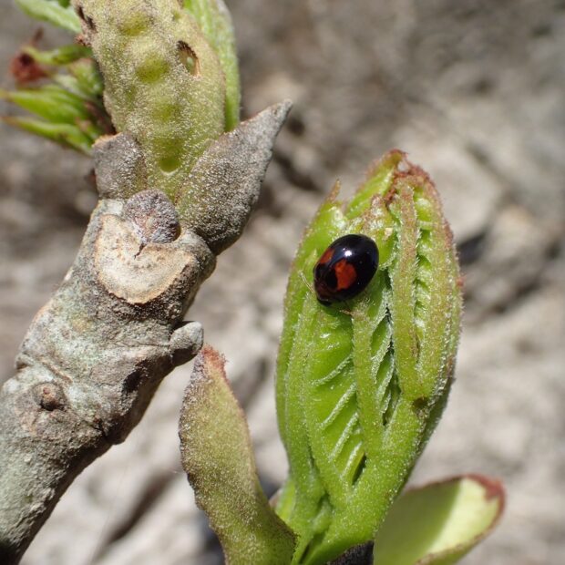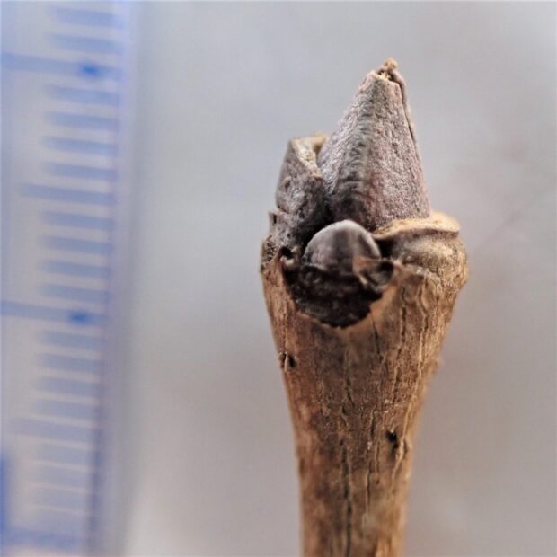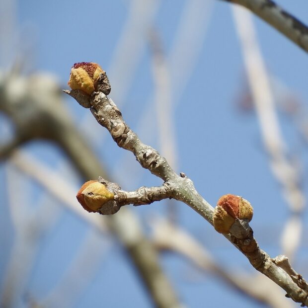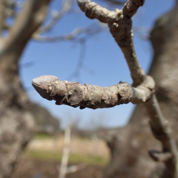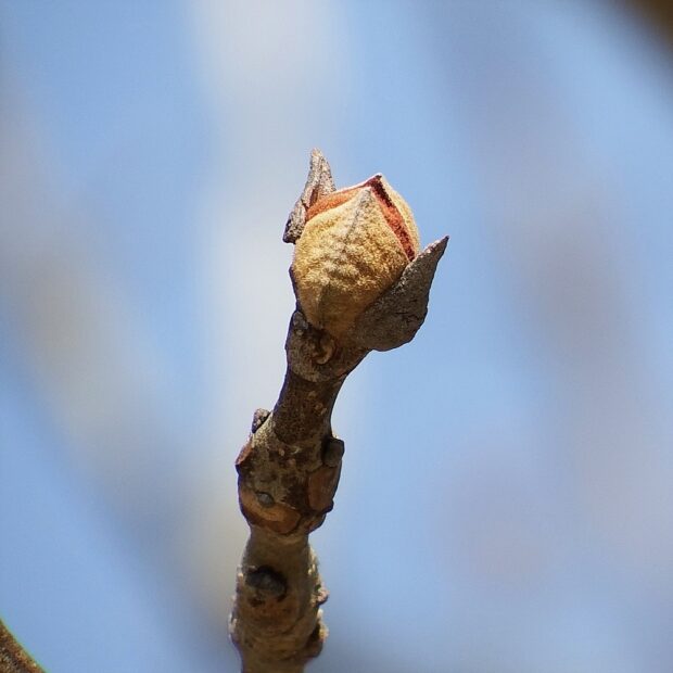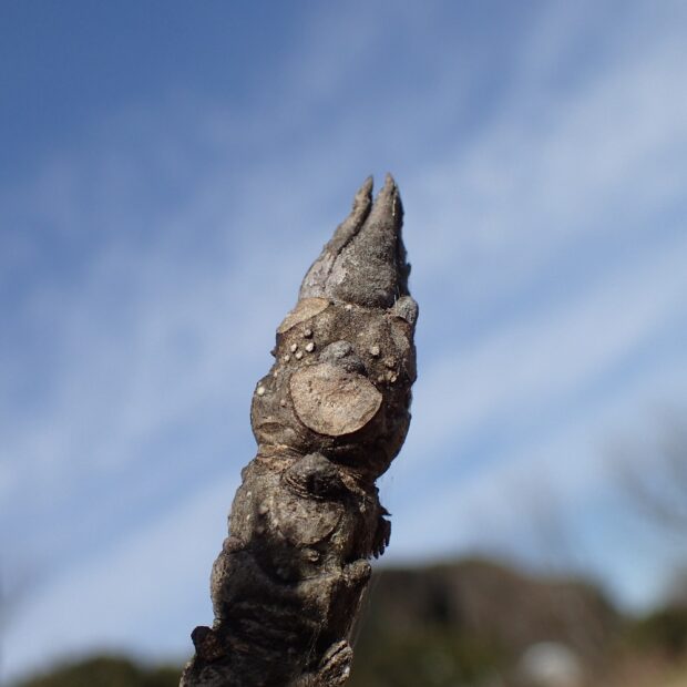 冬芽は2~4枚のうろこ状の芽で守られていて、 見る角度によっていろいろなものに見えてきます。