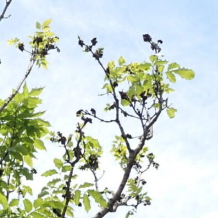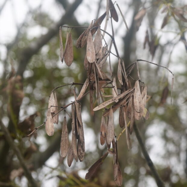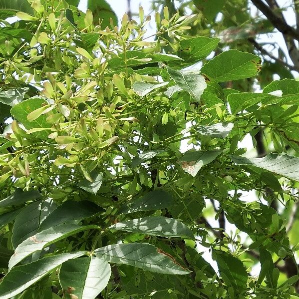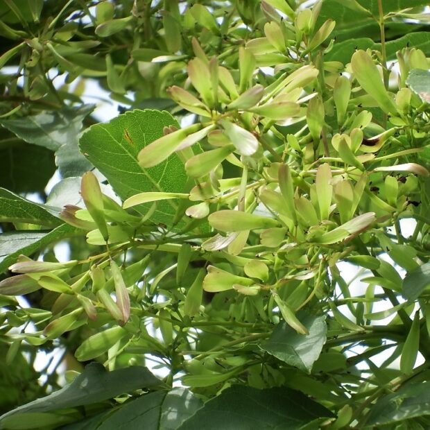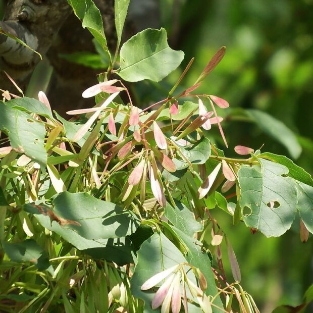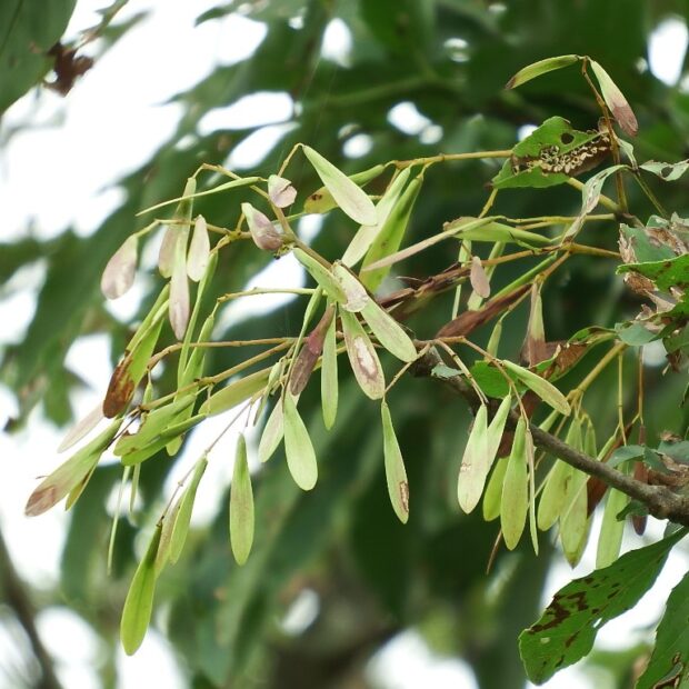 夏の終わりから秋にかけて、 翼を付けた小さな実がたくさん付きます。