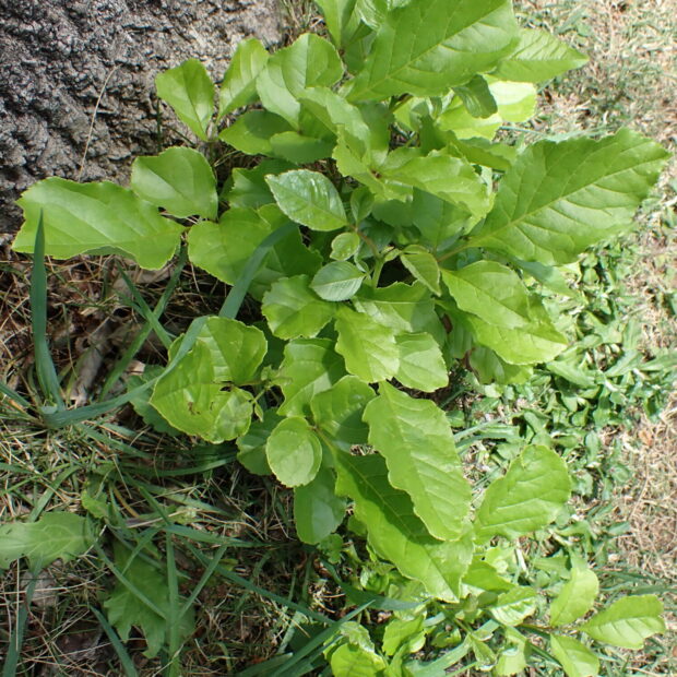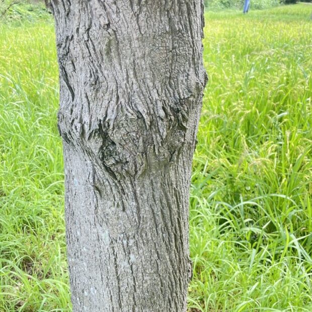 幹は暗い灰色で縦に割れ目が入ります。