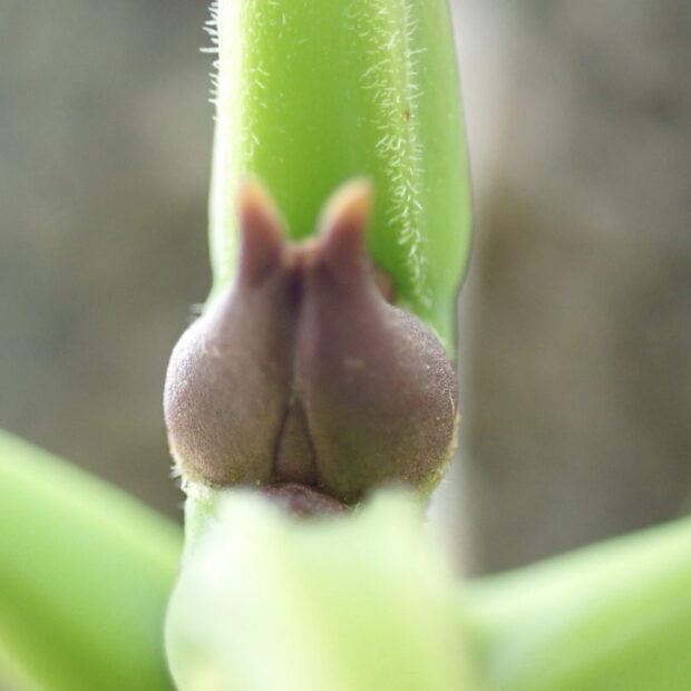葉っぱがなんというか、 形がバラバラと言いますか、 大雑っぱな作りで、 あまり几帳面さは感じられません。 花も花びらはなく、 咲いていても茶色のかたまりです。