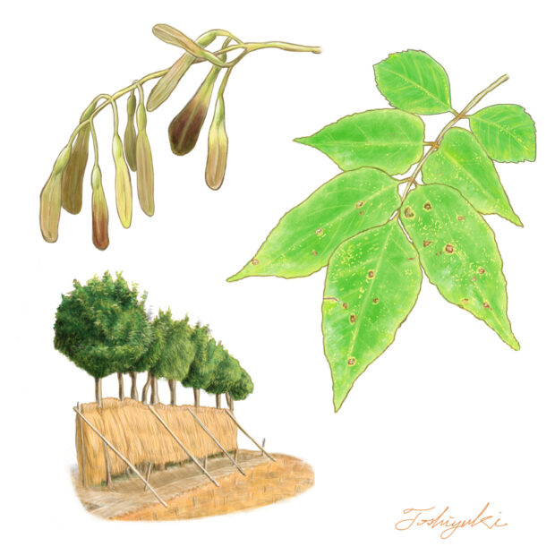 成長が早く、 まっすぐ伸びることから、 昔は広く田んぼの畔などに植えられて「はさぎ」(稲を架ける木)として田園風景の一部となっていました。