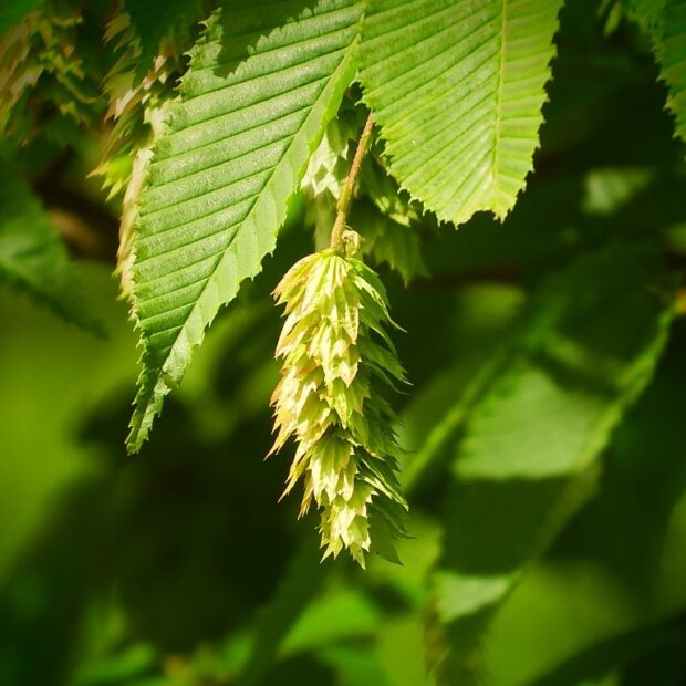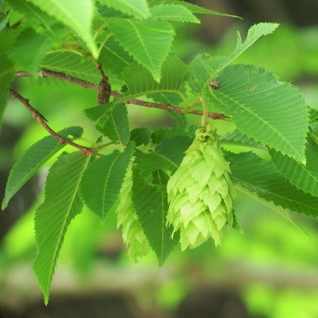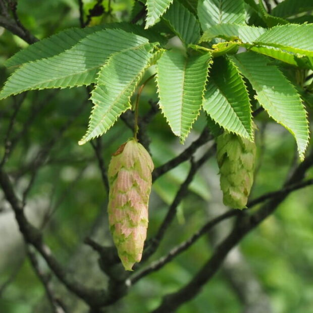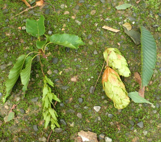 クマシデはクマのように大ぶりな葉と実を付けるためクマシデと呼ばれます。 太くて大きな果苞(かほう : 羽がついた実の集まり)が鈴なりぶら下がる様子はとても目立ちます。 日本固有種です。