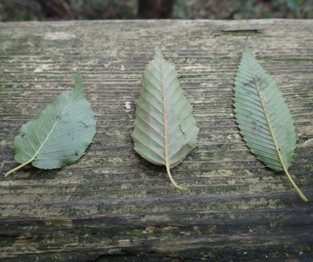よく生えているシデの仲間にはイヌシデ、 アカシデ、 クマシデなどがあります。 お互いよく似ているのですが、 葉や実、 樹皮、 色、 手触りが少しずつ違います。 ぜひ全部の木をみて比較してみましょう