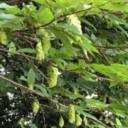 クマシデはクマのように大ぶりな葉と実を付けるためクマシデと呼ばれます。 太くて大きな果苞(かほう : 羽がついた実の集まり)が鈴なりぶら下がる様子はとても目立ちます。 日本固有種です。