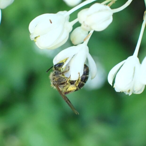 • ハナバチは花粉まみれ。
