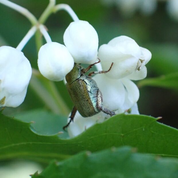 • アシナガコガネが花に潜りこむ。