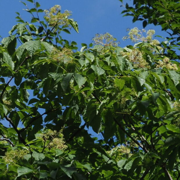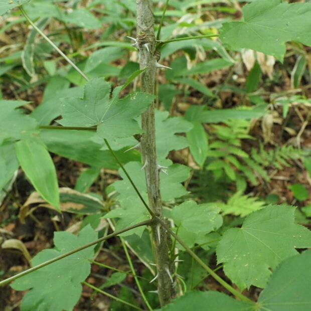 丈夫で加工しやすい木材は、 ケヤキの様な木目で白みが強くテカリもあります。 アイヌの人々は、 トゲトゲの幹や枝を立てかけて魔除けとして使っていました。