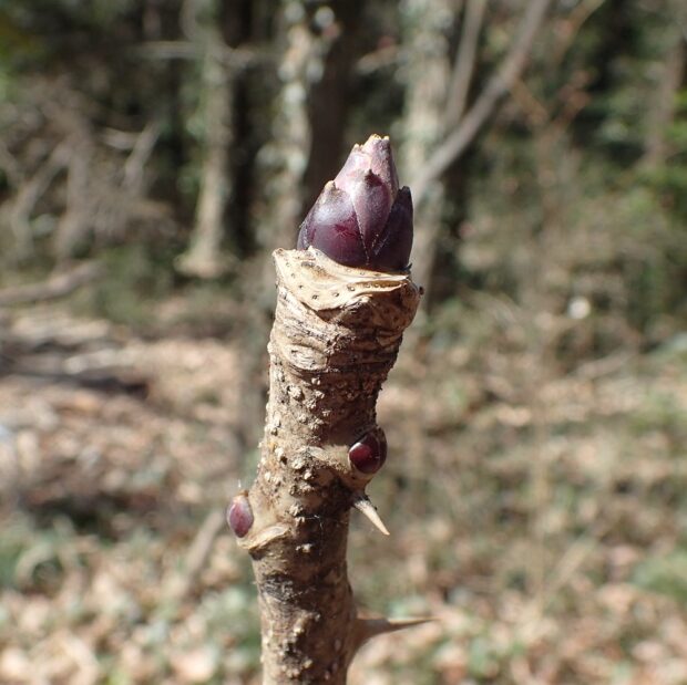 若い葉は食べることが出来ますが、 ややアクが強いので天ぷらがオススメです。 トゲトゲの枝はとり肉の臭みを取るので韓国料理のサムゲタンを美味しくするために使えます。