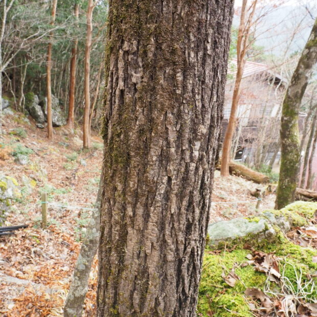 若い幹や枝にトゲがあります。 幹のトゲは次第に消えていき、 その代わり樹皮は縦に深くさけて縦長の網目模様を作ります。