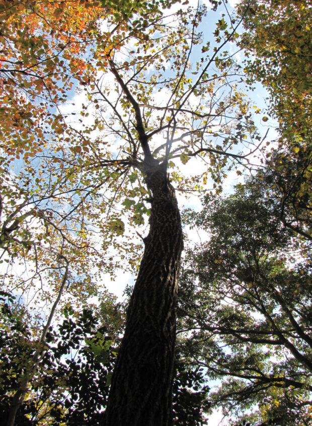 高さ10~25mくらになります。 大きめの葉っぱを付けるので、 春から秋はモサモサっとボリューム感がありますが、 そのぶん冬は枝がスカスカで何か物足りない感じがする木です。