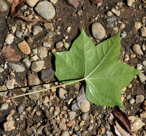 手のひらの様に大きな切れ込みがある葉っぱです。 よ~く見ると、 葉のふちには細かいギザギザもあります。 葉をちぎると独特な香りがします。