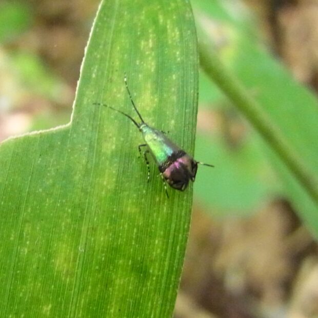 山で見られるキバネセセリの幼虫が葉を食べます。