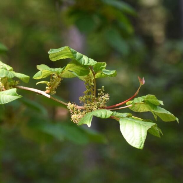 5~6月、 小っちゃくて黄緑色の雄花と雌花が別々の木に咲きます。