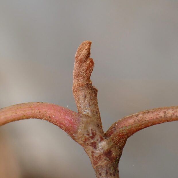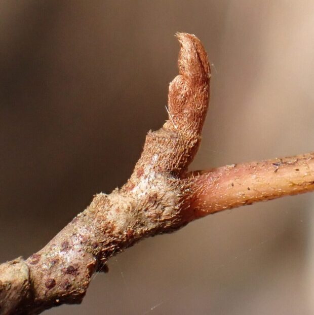 春に芽吹く新芽に茶色の毛がびっちり!生えて冬を越します。
