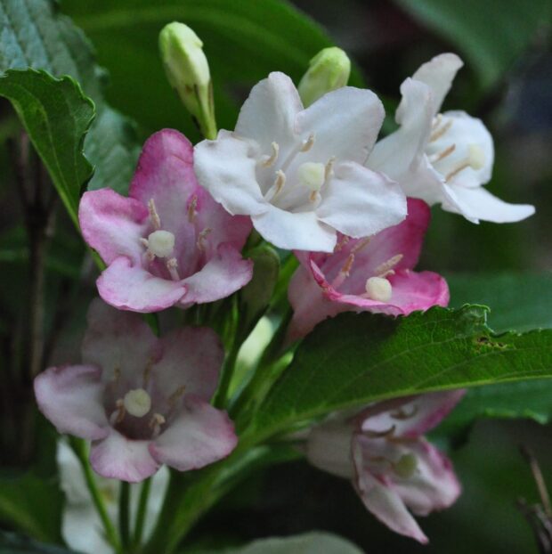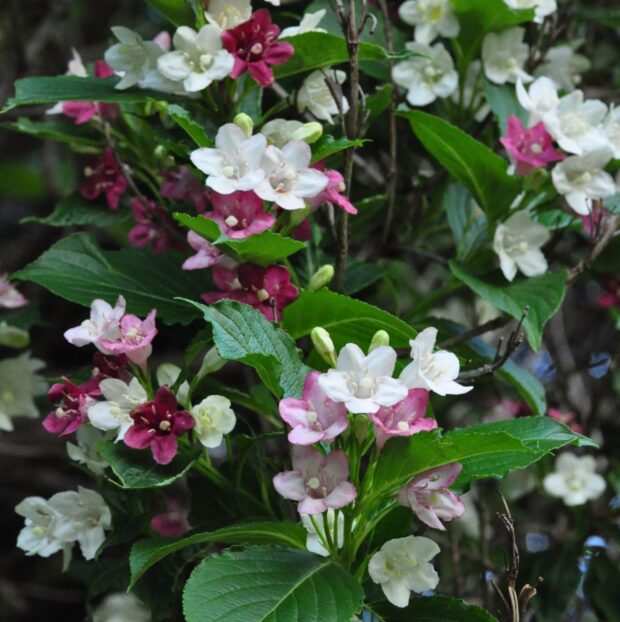 初夏に咲く白い花はだんだピンク色、 紅色に変わっていき、 色とりどりの花が一度に咲いているように見えます。