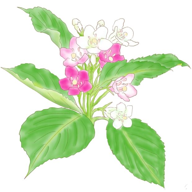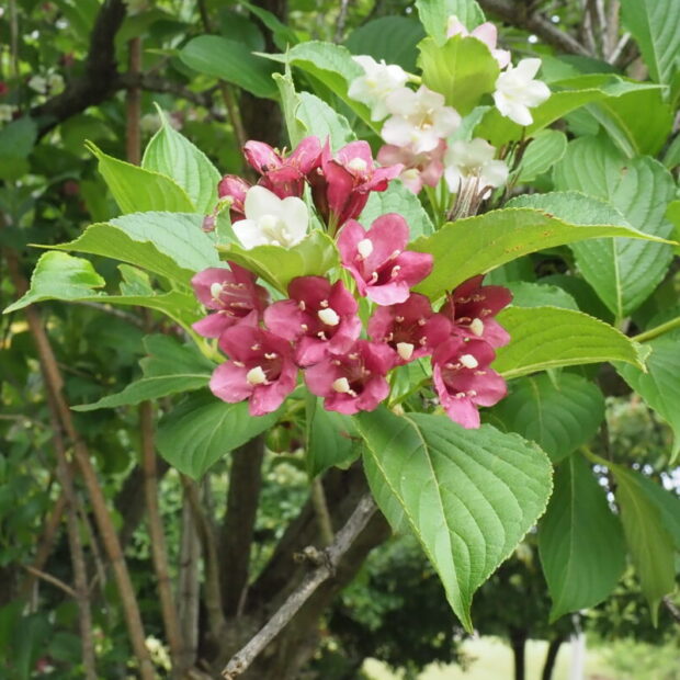 同じ木に白く花と赤い花が混ざり合うことから錦帯花(きんたいか)という中国名や、 「ゲンペイウツギ(源平空木)」といった別名もあります。
