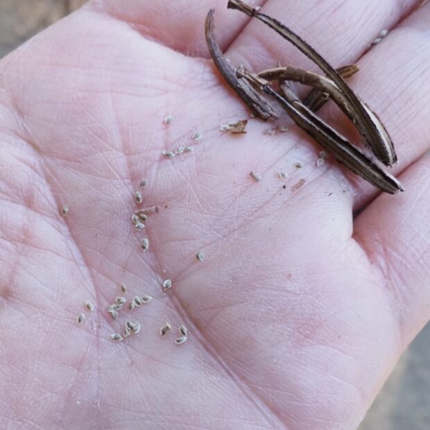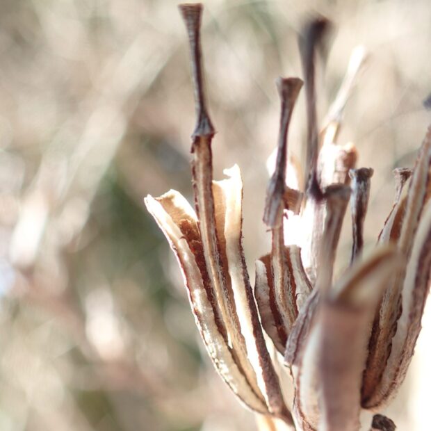 筒状の実です。 11月頃に茶色に熟すと筒が裂けて、 中から小さな種が飛び出します。 種には翼があり、 風によって遠くへ飛んでいきます。