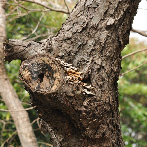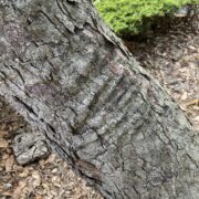 灰褐色です。 若い木は滑らかで、 年を重ねるにつれて幹がだんだんと剥がれ、 荒々しい幹になります。