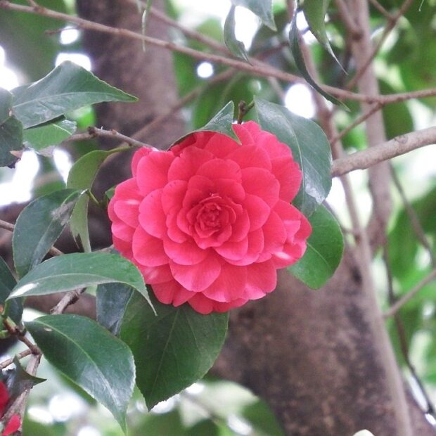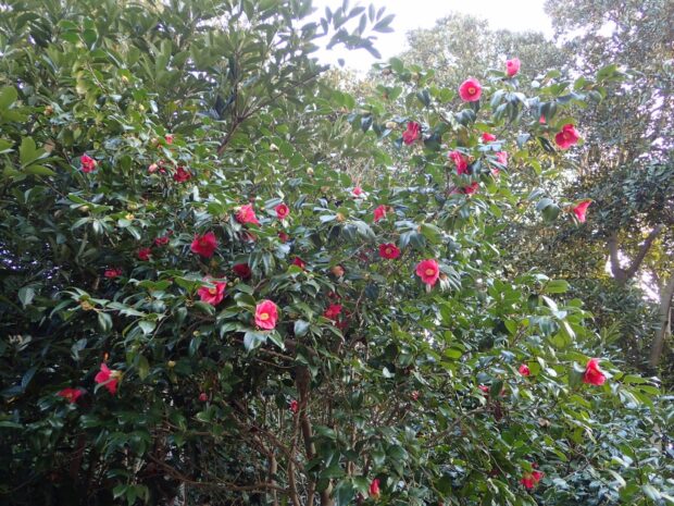 公園などに植えられているものは高さ2~5mにまとめられていますが、 野生のツバキは成長すると高さ20mにもなります。