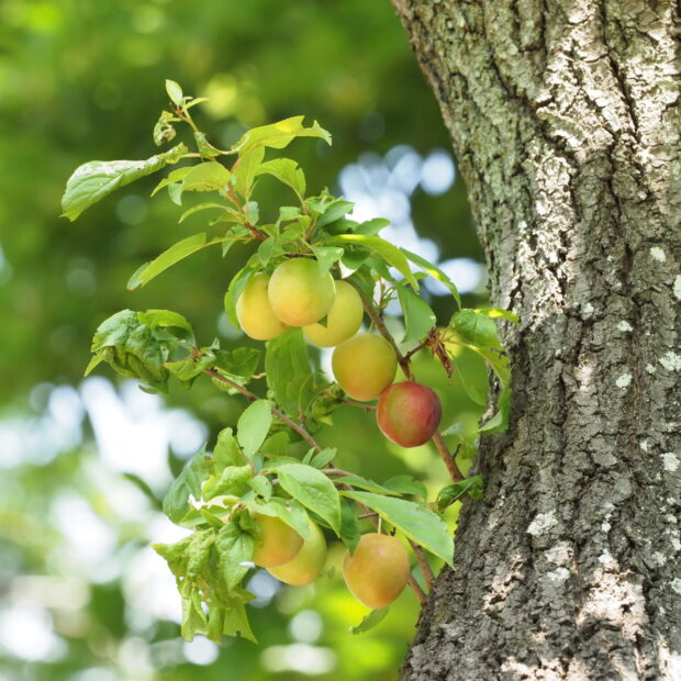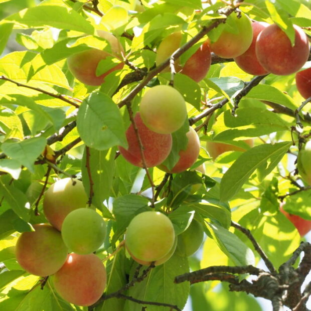 昔から果樹栽培され多くの栽培品種があります。 よく店で「プルーン」という名で売られている実は紫色ですが、 それ以外にもいろんな色、 形があります。