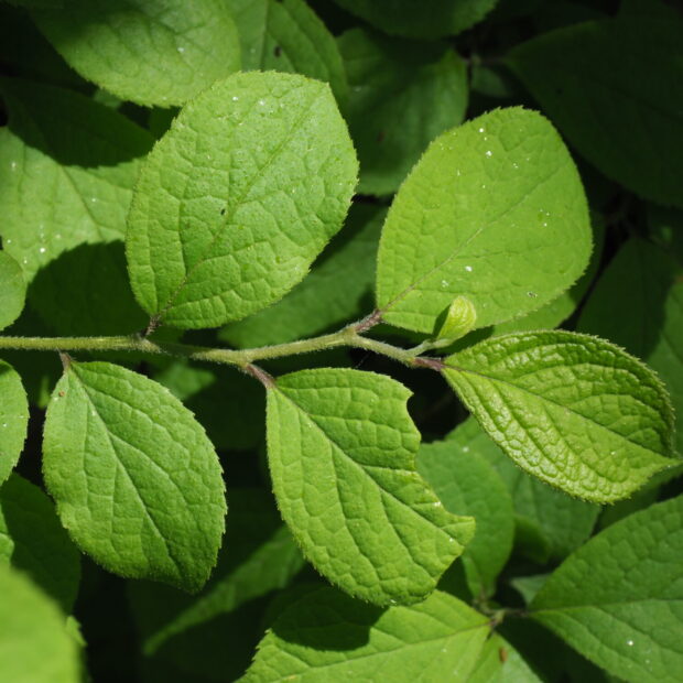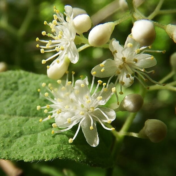 本州の日本海側には葉の表面や花の柄に毛が無いオクノサワフタギという変種が自生しています。