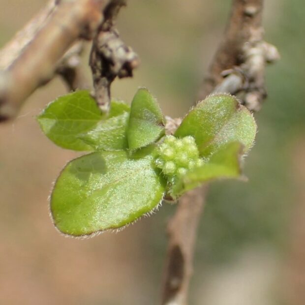 一年目の枝は曲がった毛が生えて目立ちます。