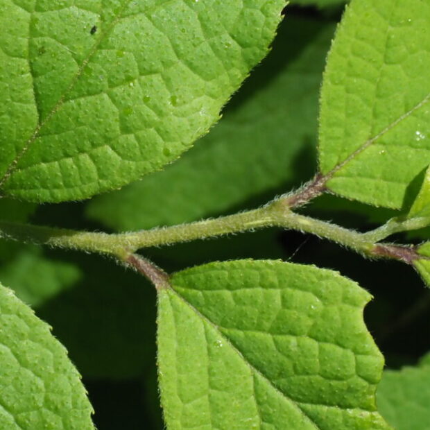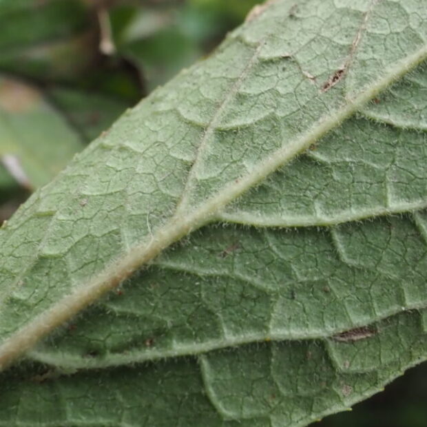 両面とも毛でざらつき、 葉柄も毛が多いです。