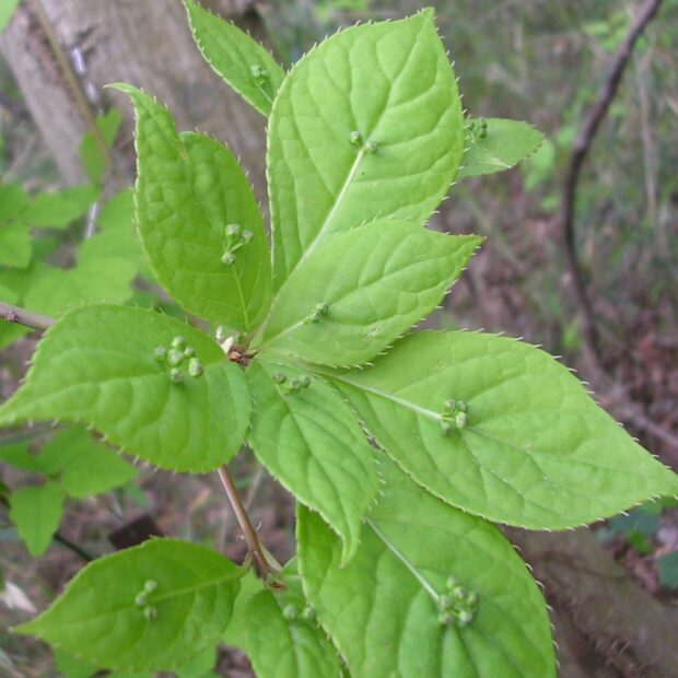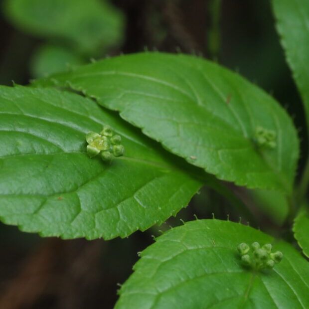 • 直径4~6㎜の淡い緑色の小さな花が葉の真ん中に咲く