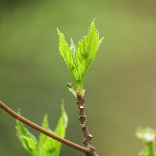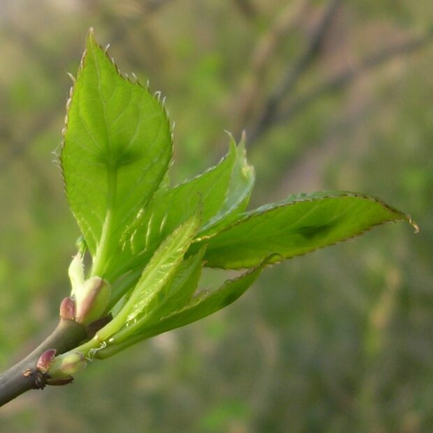 • 葉の付け根に白くて小さい托葉が付く。 新芽は特にギザギザの糸っぽさが際立つ