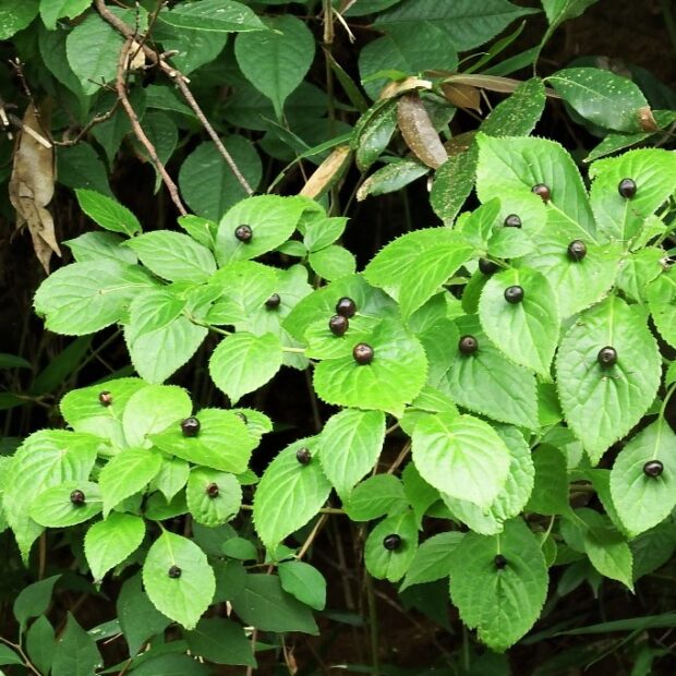 晩夏から秋にかけてなる実はピカピカして黒い真珠のようです。