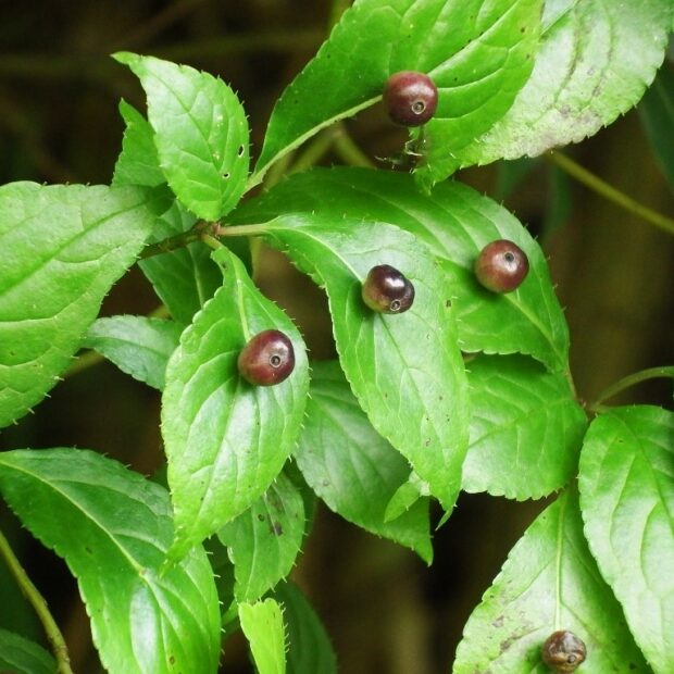 晩夏から秋にかけて1㎝程の丸くて黒く熟す実が付きます。