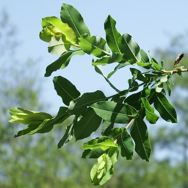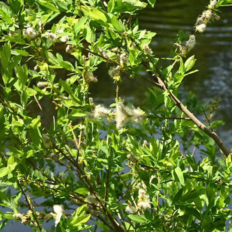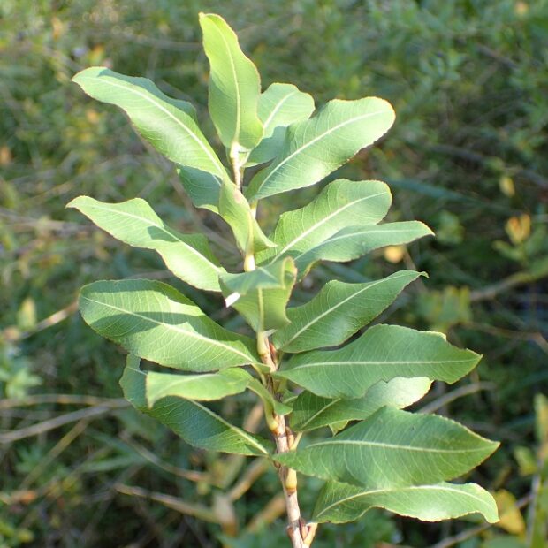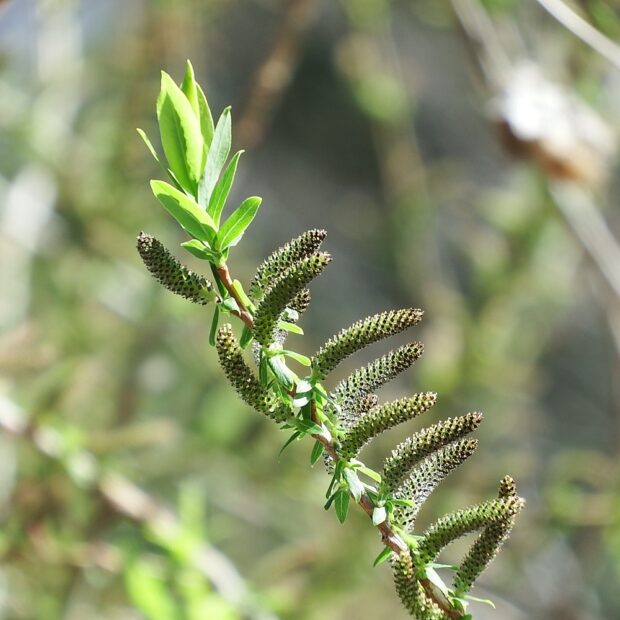 川沿いなど身近な場所で見かけます。 葉の先が他のヤナギの仲間より丸みがあるのも特徴です。
