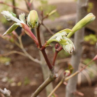 ハウチワカエデと違い一年目の枝には白い綿毛があります。