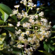 1cmぐらいの白い小さな花があつまって咲きます。 小さなコガネムシなどが集まります。