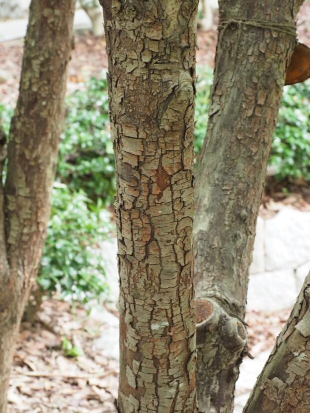 褐色。 老木だと樹皮が縦に細かく剥がれます。