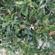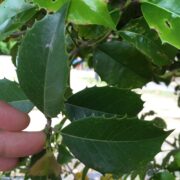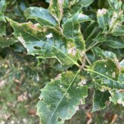 ヒイラギの葉を少し大きくしたようなギザギザの葉っぱです。