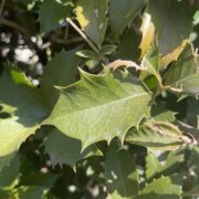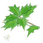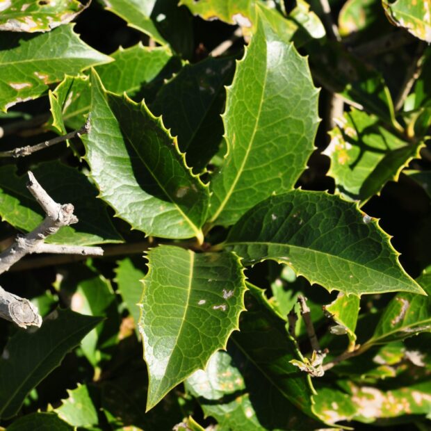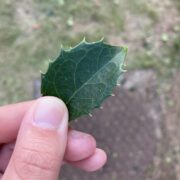 ヒイラギの葉を少し大きくしたようなギザギザの葉っぱです。