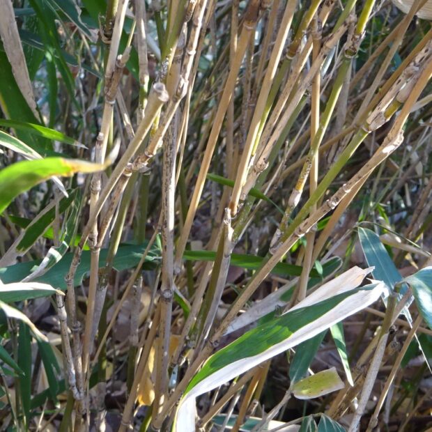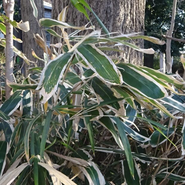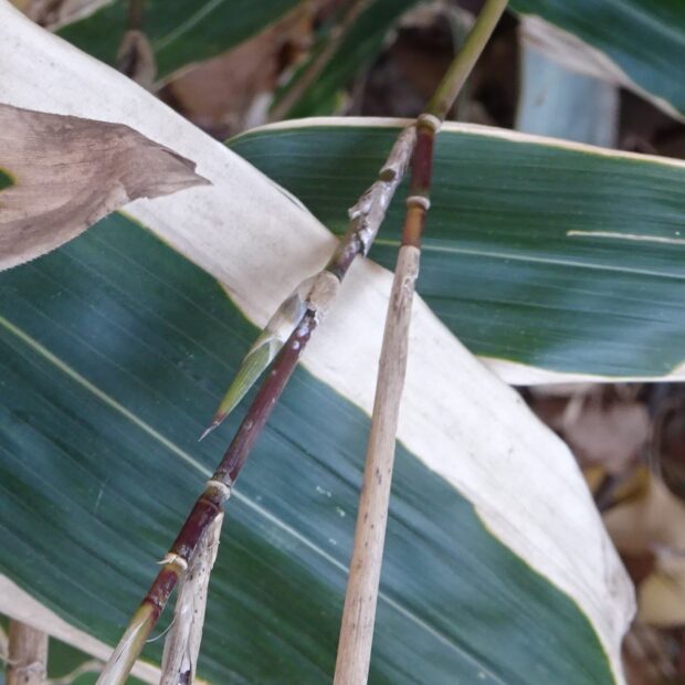 高さは0.5~2m程まで大きくなります。 地下茎で増えて細い稈(かん・木の幹にあたる部分)をたくさん出します。